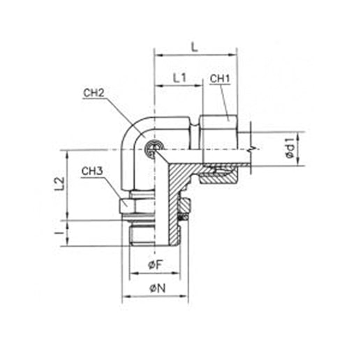 Угольник ввертный с уплотнительным кольцом и контргайкой TN 514 10 мм 3-8